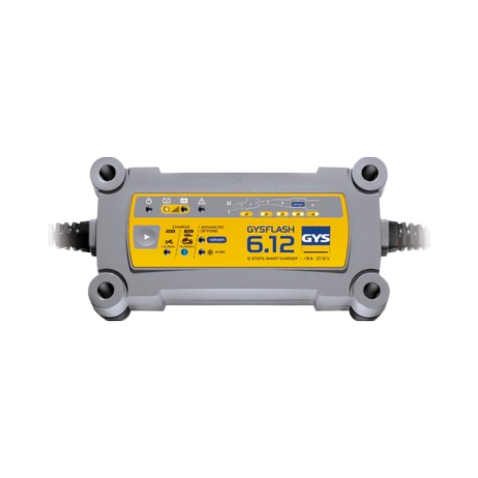 Il caricabatterie GYSFLASH 6.12 offre una carica ottimale per le moto, automobili e utilitarie a 12V.